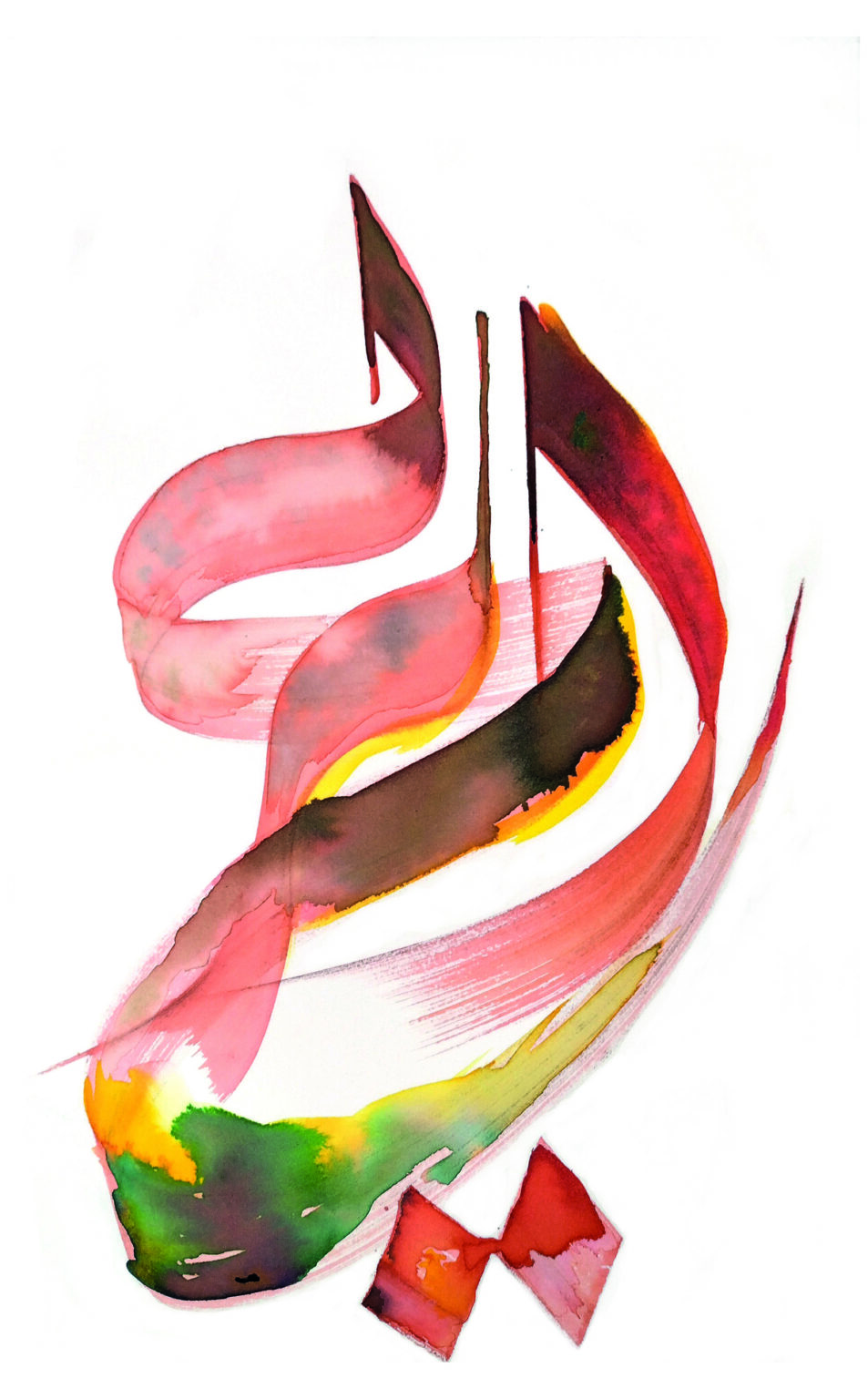La calligraphie est un héritage de mon père maître-calligraphe qui m’a transmis l’art de manier et de sublimer les lettres arabes. Art du souffle et du mouvement, art sacré et millénaire omniprésent dans la civilisation arabo-musulmane, j’explore avec une humilité nécessaire les possibilités infinies qu’offre la calligraphie. J’en cherche les contours, là où l’encre et l’eau se répandent, là où les lettres s’hybrident et où le geste se fait trace.